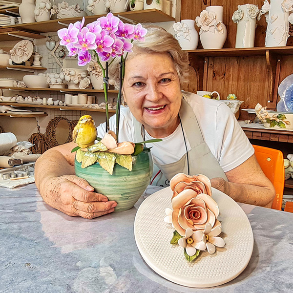 Aprenda a arte de modelar arranjos de flores em cerâmica diretamente com uma artista que tem mais de 45 anos de experiência, sendo 25 somente na cerâmica. Adquira o curso agora e mergulhe no universo mágico da cerâmica. Não perca a chance de aprender com uma verdadeira mestra - este curso é uma oportunidade única para quem quer criar, inovar e se apaixonar ainda mais pela arte.